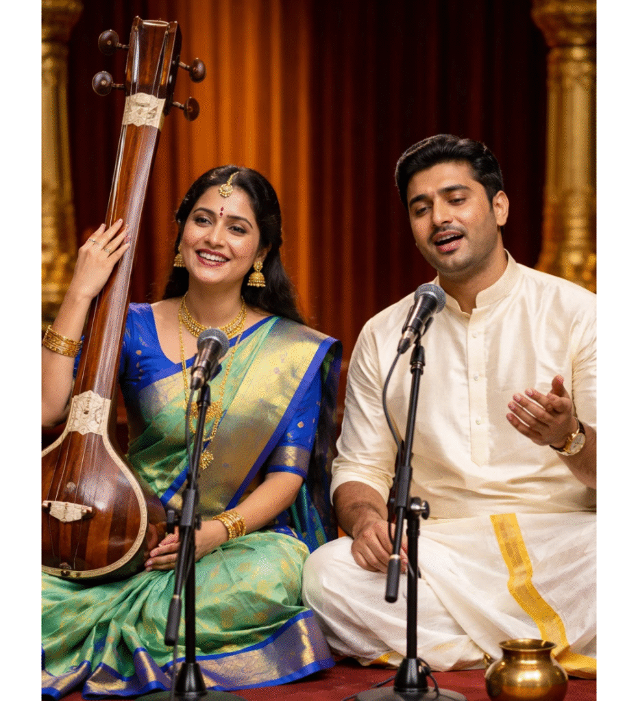 Now the core areas of focus are Carnatic Vocal and Veena. Aswathy rendered her voice in various auspicious functions including Chembai Sangeetholsavam and Thiruvaiyaru Thyagaraja Aradhanai. She also worked as a music teacher in UAE and with several online music institutions, where she guided many students and helped them move forward in their musical journey.